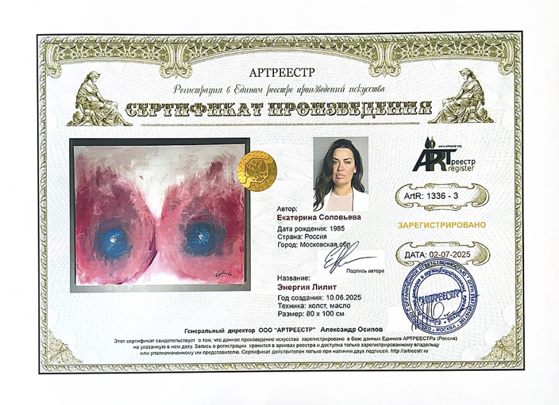 Online система регистрации арт-объектов artreestr / Сертификаты произведений членов «АРТ реестра» / Соловьева Екатерина Александровна / Энергия Лилит