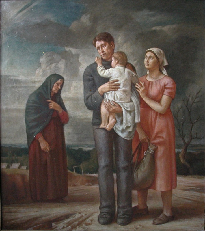 Online система регистрации арт-объектов artreestr / Галерея картин не членов Реестра / пятахин николай петрович / "Разлука". левая часть триптиха "Великая Отечественная Война