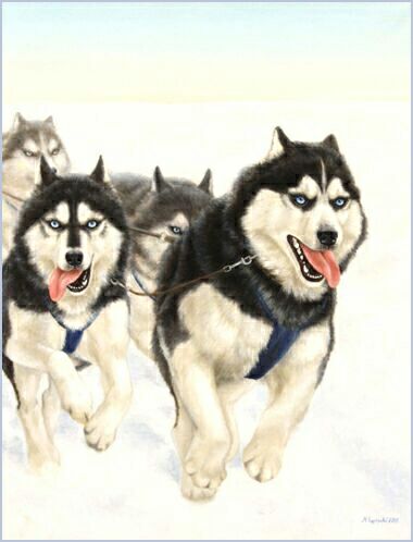Online система регистрации арт-объектов artreestr / Галерея картин не членов Реестра / Ефремова Марина Борисовна / "Упряжка (Хаски)", 2005 г., холст, масло