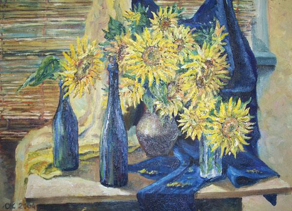 Online система регистрации арт-объектов artreestr / Галерея картин не членов Реестра / Бертасова Ольга Владимировна / Подсолнухи на синем