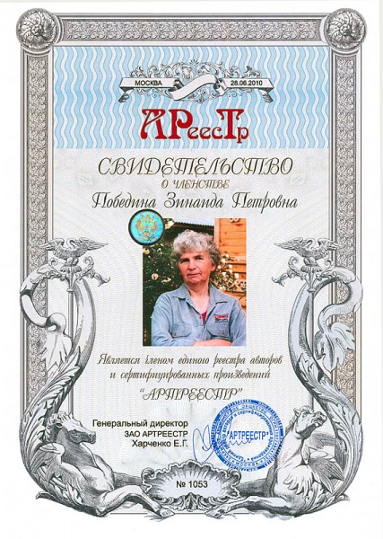 В настоящее время является Членом Закрытого акционерного общества «Единый реестр авторов и сертифицированных произведений «АРТРЕЕСТР»