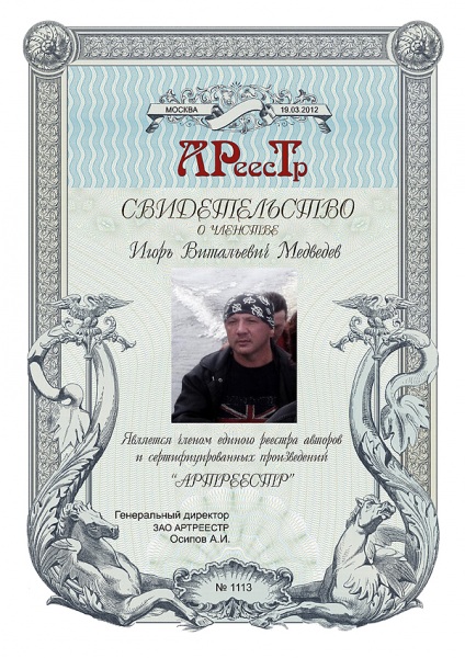 Online система регистрации арт-объектов artreestr / Реестр авторов / Медведев Игорь Витальевич