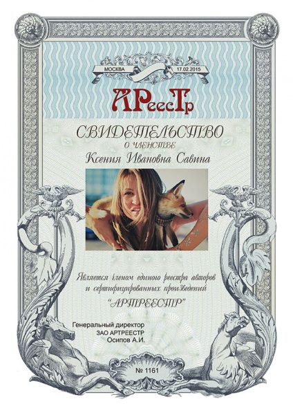 Online система регистрации арт-объектов artreestr / Реестр авторов / Савина Ксения Ивановна