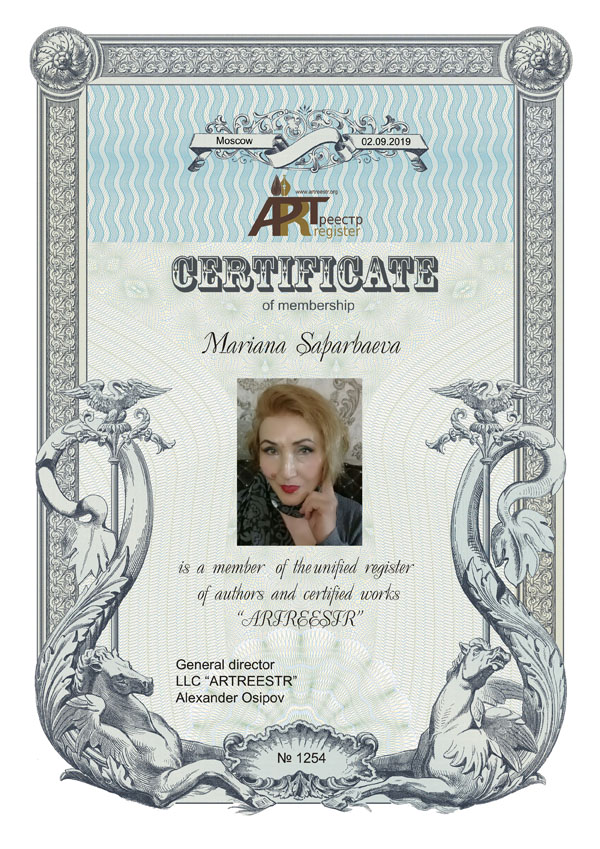 Я профессиональный художник. Закончила частную художественную школу, а также закончила частную музыкальную школу. Получила образование по журналистике. Я горжусь своими учителями, и говорю "спасибо" всем тем, кто дал мне достойное образование. Я иду предназначенным путём.