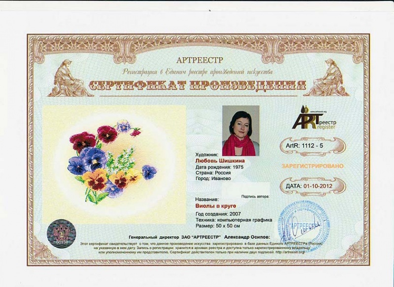 Online система регистрации арт-объектов artreestr / Сертификаты произведений членов «АРТ реестра» / Шишкина Любовь Витальевна / Виолы в круге
