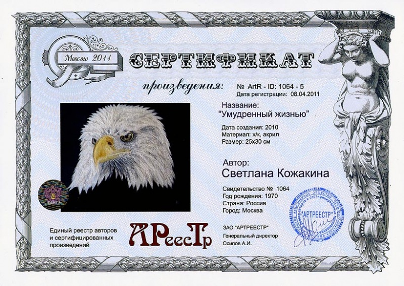 Online система регистрации арт-объектов artreestr / Сертификаты произведений членов «АРТ реестра» / Кожакина Светлана Викторовна / Умудренный жизнью