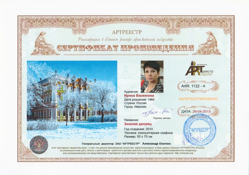 0 0 0 0 0   Online система регистрации арт-объектов artreestr / Сертификаты произведений членов «АРТ реестра» / Васенкова Ирина Владимировна / Зимний дворец