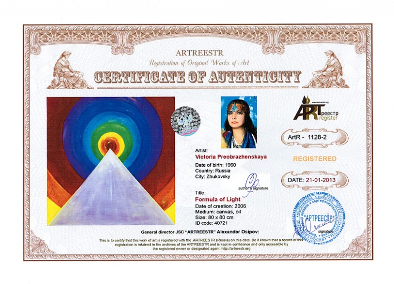 0 0 0 0 0   Online система регистрации арт-объектов artreestr / Сертификаты произведений членов «АРТ реестра» / Преображенская Виктория Викторовна / Формула Света