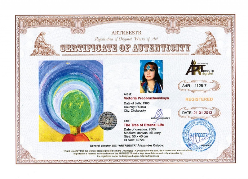 Online система регистрации арт-объектов artreestr / Сертификаты произведений членов «АРТ реестра» / Преображенская Виктория Викторовна / Древо Жизни Вечной