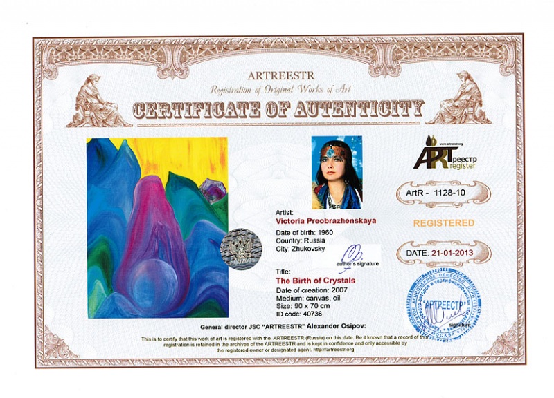 Online система регистрации арт-объектов artreestr / Сертификаты произведений членов «АРТ реестра» / Преображенская Виктория Викторовна / Рождение Кристаллов