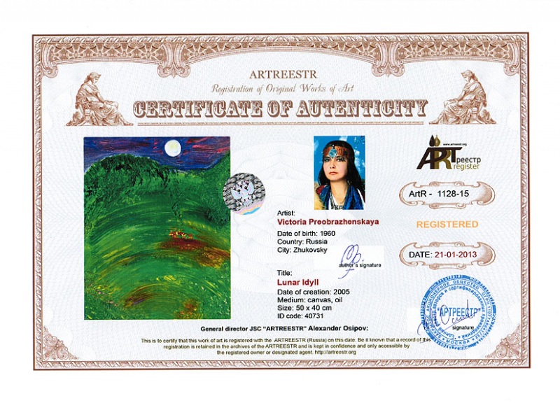 Online система регистрации арт-объектов artreestr / Сертификаты произведений членов «АРТ реестра» / Преображенская Виктория Викторовна / Лунная Идиллия