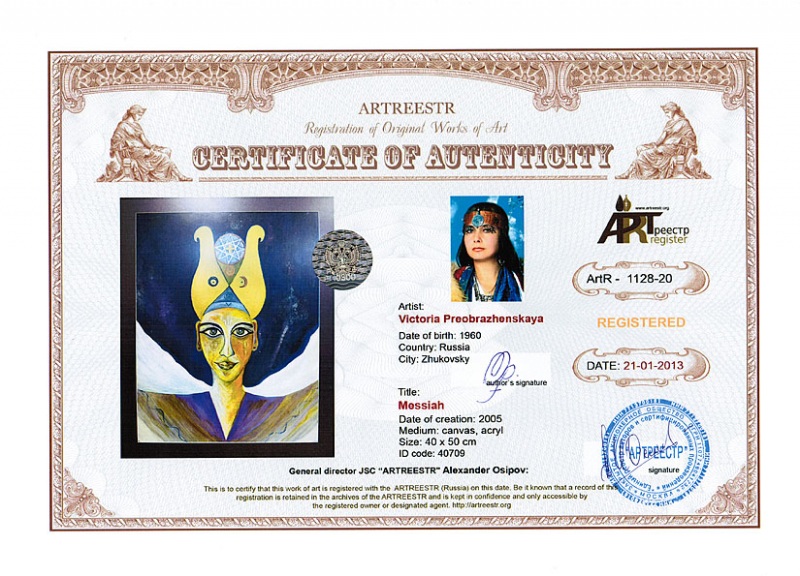 Online система регистрации арт-объектов artreestr / Сертификаты произведений членов «АРТ реестра» / Преображенская Виктория Викторовна / Мессия