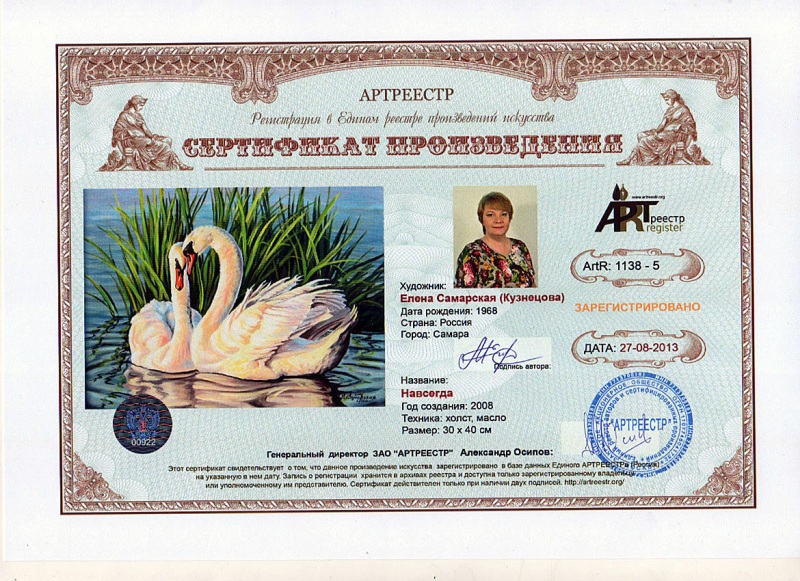 Online система регистрации арт-объектов artreestr / Сертификаты произведений членов «АРТ реестра» / Самарская Елена / Навсегда