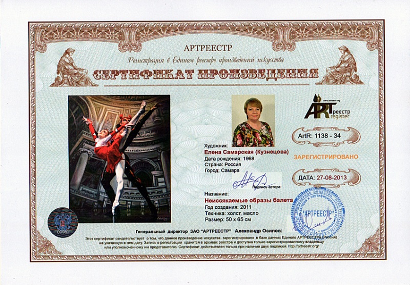 Online система регистрации арт-объектов artreestr / Сертификаты произведений членов «АРТ реестра» / Самарская Елена / Неиссякаемые образы балета