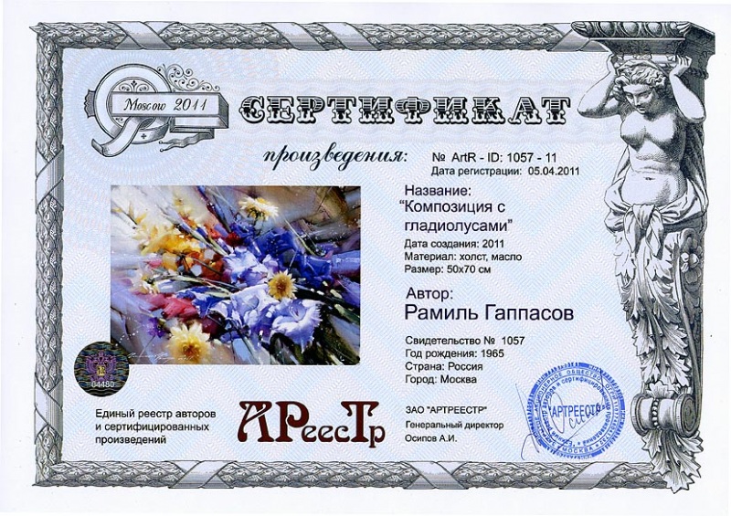 Online система регистрации арт-объектов artreestr / Сертификаты произведений членов «АРТ реестра» / Гаппасов Рамиль Равильевич / Композиция с гладиолусами