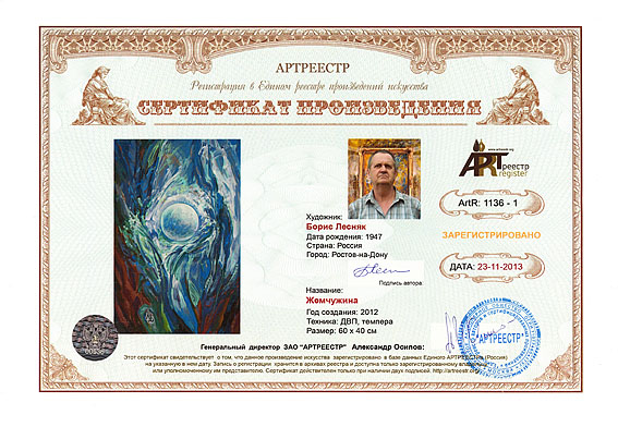 Online система регистрации арт-объектов artreestr / Сертификаты произведений членов «АРТ реестра» / Лесняк Борис Михайлович / Жемчужина