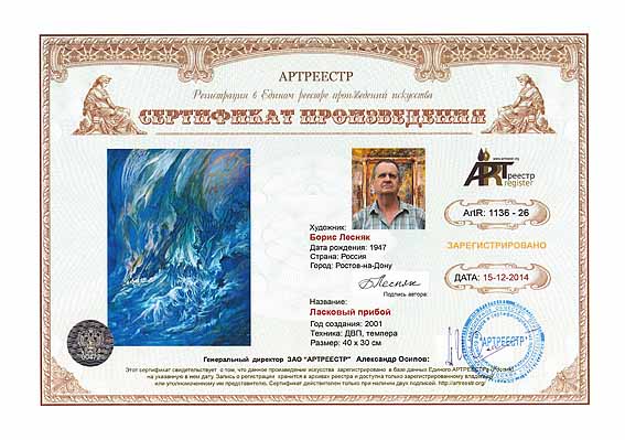 0 0 0 0 0   Online система регистрации арт-объектов artreestr / Сертификаты произведений членов «АРТ реестра» / Лесняк Борис Михайлович / Ласковый прибой