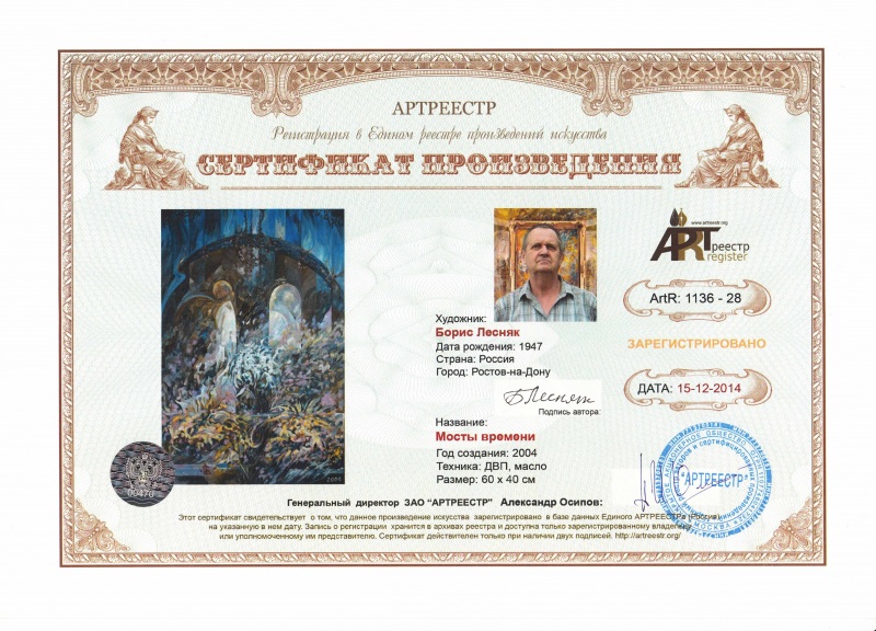 Online система регистрации арт-объектов artreestr / Сертификаты произведений членов «АРТ реестра» / Лесняк Борис Михайлович / Мосты времени