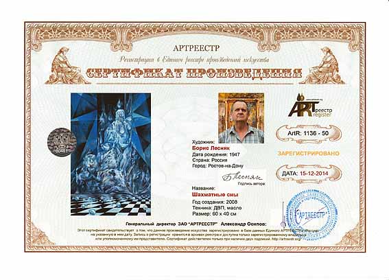 Online система регистрации арт-объектов artreestr / Сертификаты произведений членов «АРТ реестра» / Лесняк Борис Михайлович / Шахматные сны