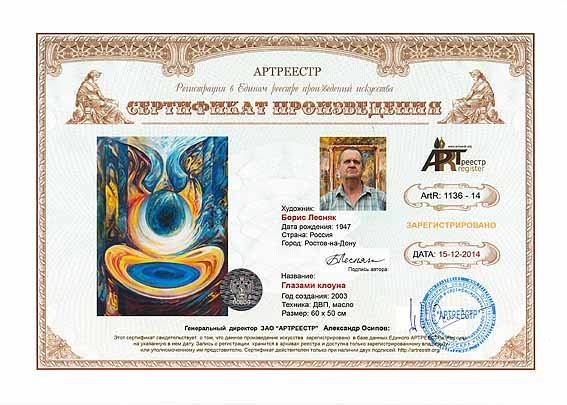 Online система регистрации арт-объектов artreestr / Сертификаты произведений членов «АРТ реестра» / Лесняк Борис Михайлович / Глазами клоуна
