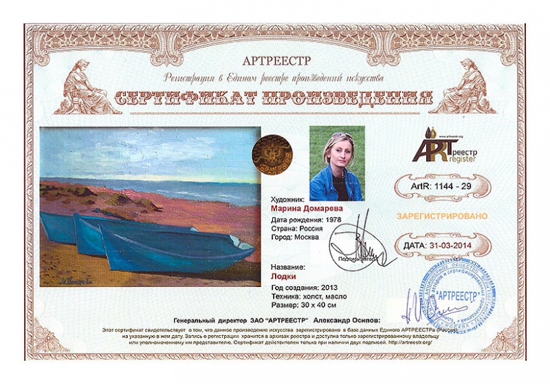 Online система регистрации арт-объектов artreestr / Сертификаты произведений членов «АРТ реестра» / Домарева Марина Владимировна / Лодки