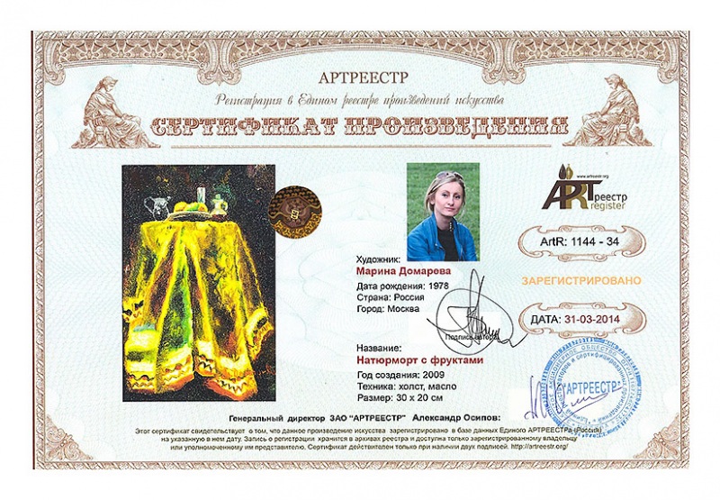 "Единый реестр авторов и сертифицированных произведений искусства"