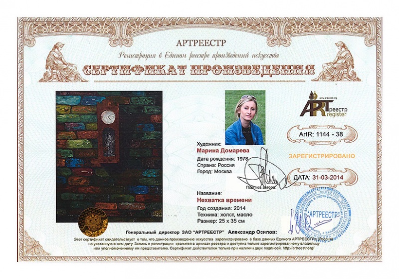 Online система регистрации арт-объектов artreestr / Сертификаты произведений членов «АРТ реестра» / Домарева Марина Владимировна / Нехватка времени