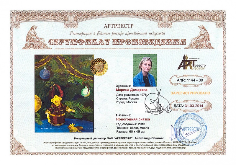 "Единый реестр авторов и сертифицированных произведений искусства"