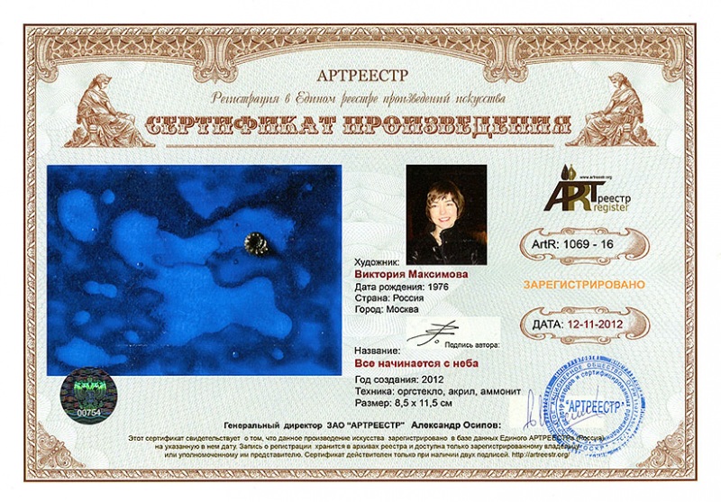 0 0 0 0 0   Online система регистрации арт-объектов artreestr / Сертификаты произведений членов «АРТ реестра» / Максимова Виктория Павловна / Все начинается с неба