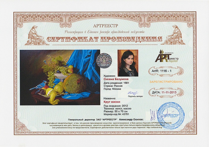 Единый реестр авторов и сертифицированных произведений искусства