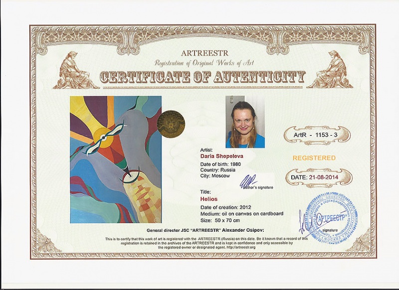Online система регистрации арт-объектов artreestr / Сертификаты произведений членов «АРТ реестра» / Шепелева Дарья Альбертовна / Гелиос