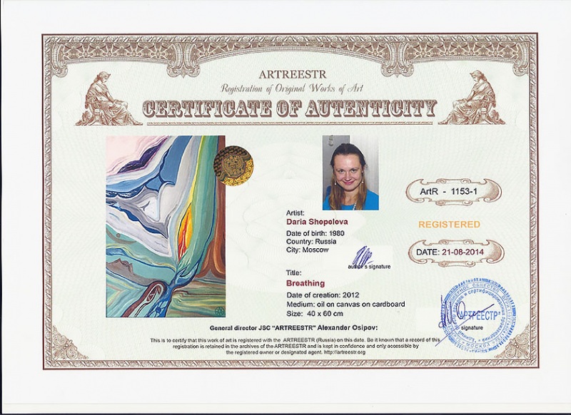 Online система регистрации арт-объектов artreestr / Сертификаты произведений членов «АРТ реестра» / Шепелева Дарья Альбертовна / Дыхание
