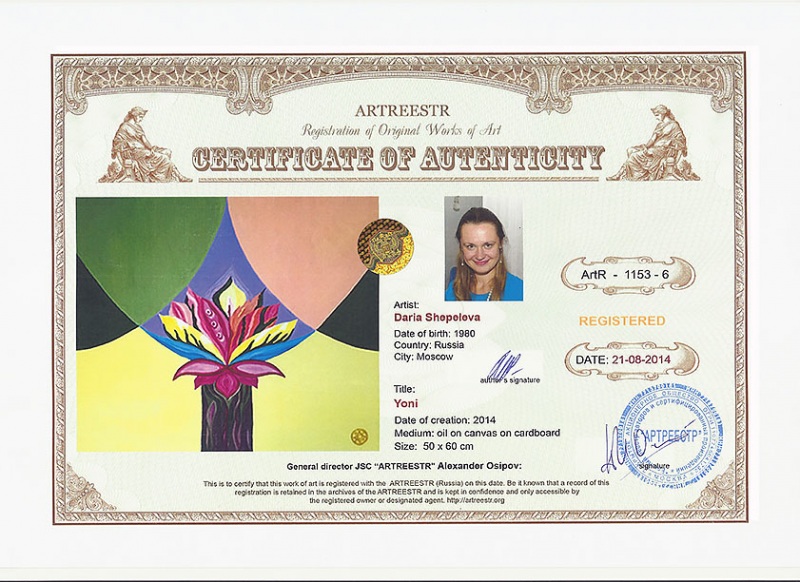 0 0 0 0 0   Online система регистрации арт-объектов artreestr / Сертификаты произведений членов «АРТ реестра» / Шепелева Дарья Альбертовна / Йони