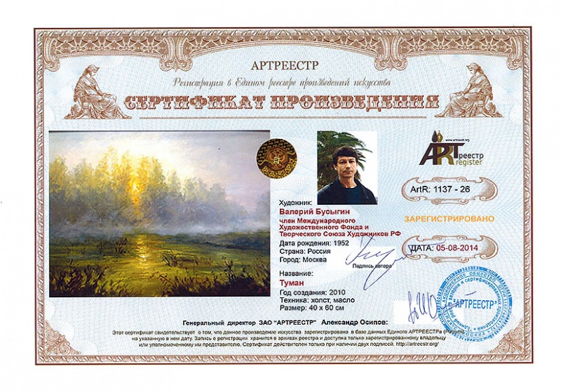 Online система регистрации арт-объектов artreestr / Сертификаты произведений членов «АРТ реестра» / Бусыгин Валерий / Туман