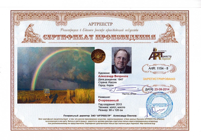 Online система регистрации арт-объектов artreestr / Сертификаты произведений членов «АРТ реестра» / Веприков Александр Иванович / Очарованный