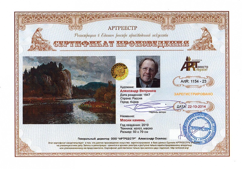 Online система регистрации арт-объектов artreestr / Сертификаты произведений членов «АРТ реестра» / Веприков Александр Иванович / Мосин камень