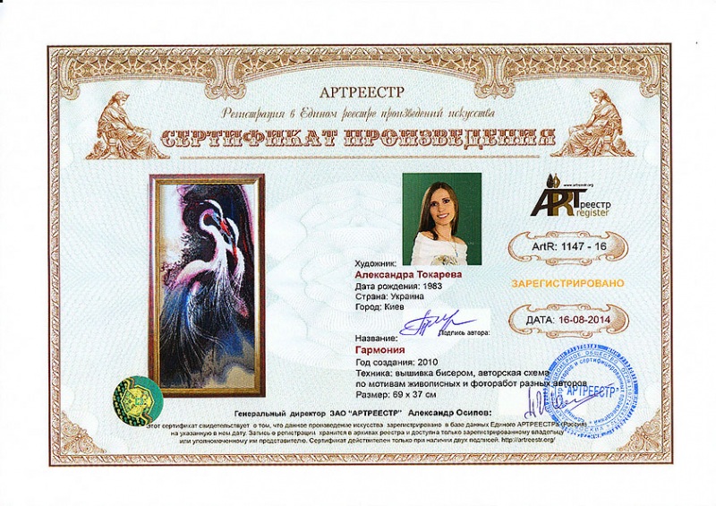 0 0 0 0 0   Online система регистрации арт-объектов artreestr / Сертификаты произведений членов «АРТ реестра» / Токарева Александра Васильевна / Гармония