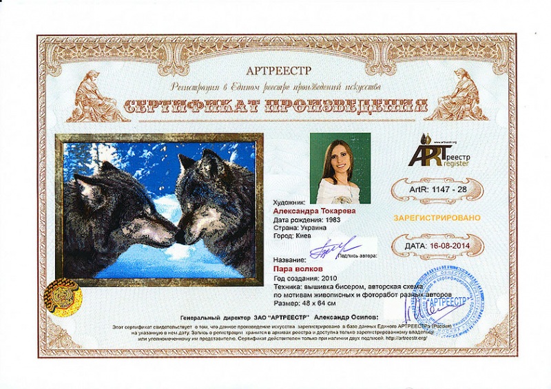 Online система регистрации арт-объектов artreestr / Сертификаты произведений членов «АРТ реестра» / Токарева Александра Васильевна / Пара волков