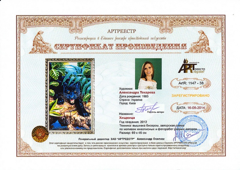 0 0 0 0 0   Online система регистрации арт-объектов artreestr / Сертификаты произведений членов «АРТ реестра» / Токарева Александра Васильевна / Хищница