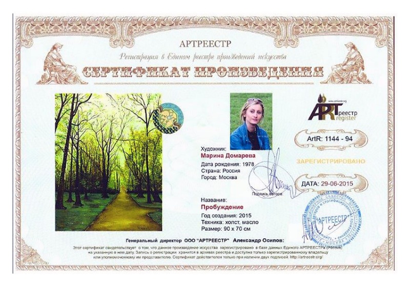Online система регистрации арт-объектов artreestr / Сертификаты произведений членов «АРТ реестра» / Домарева Марина Владимировна / Пробуждение