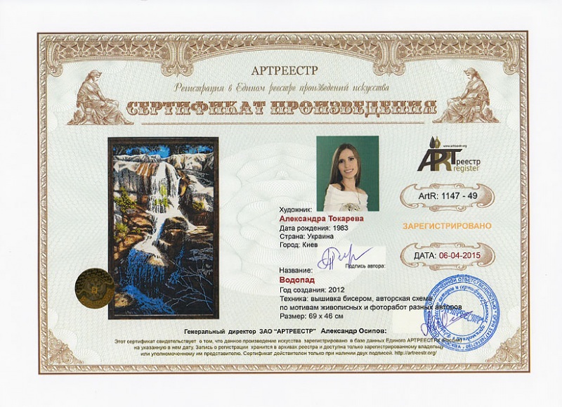 Online система регистрации арт-объектов artreestr / Сертификаты произведений членов «АРТ реестра» / Токарева Александра Васильевна / Водопад