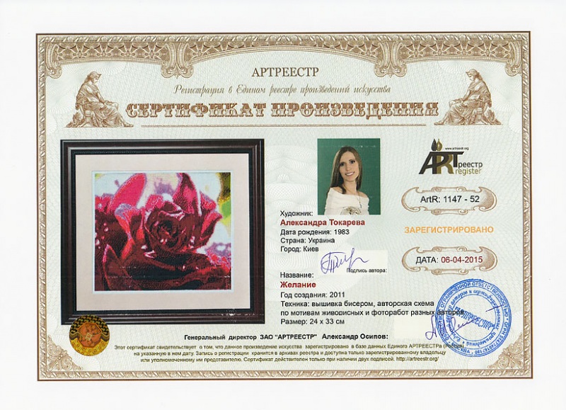 Online система регистрации арт-объектов artreestr / Сертификаты произведений членов «АРТ реестра» / Токарева Александра Васильевна / Желание