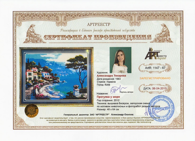Online система регистрации арт-объектов artreestr / Сертификаты произведений членов «АРТ реестра» / Токарева Александра Васильевна / Прогулка у моря