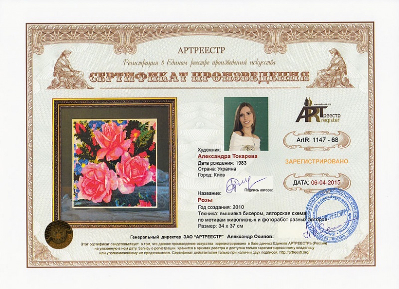 0 0 0 0 0   Online система регистрации арт-объектов artreestr / Сертификаты произведений членов «АРТ реестра» / Токарева Александра Васильевна / Розы