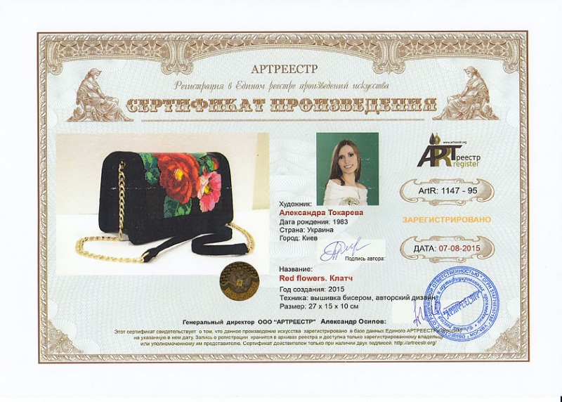 Online система регистрации арт-объектов artreestr / Сертификаты произведений членов «АРТ реестра» / Токарева Александра Васильевна / Клатч "Red flowers"