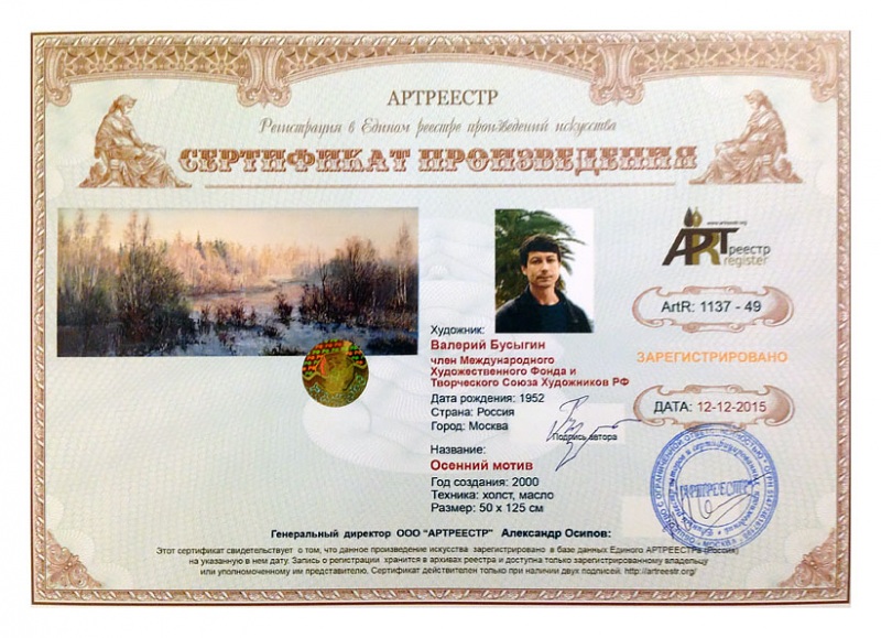 Online система регистрации арт-объектов artreestr / Сертификаты произведений членов «АРТ реестра» / Бусыгин Валерий / Осенний мотив
