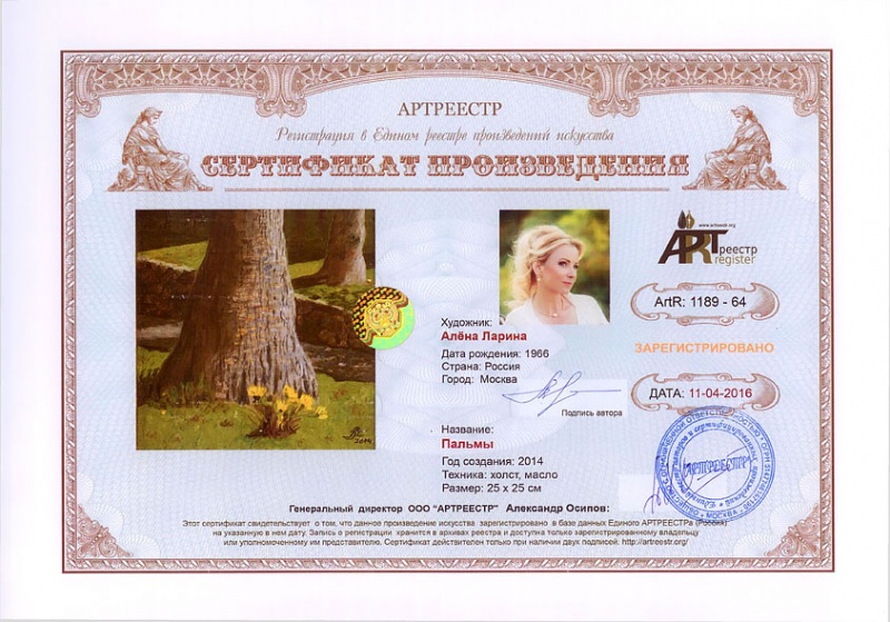 Online система регистрации арт-объектов artreestr / Сертификаты произведений членов «АРТ реестра» / Ларина Алёна / Пальмы