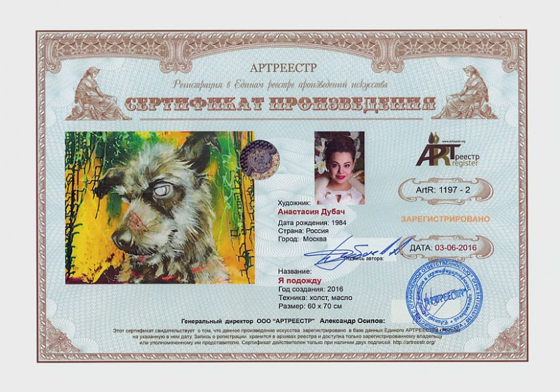 Online система регистрации арт-объектов artreestr / Сертификаты произведений членов «АРТ реестра» / Дубач Анастасия Анатольевна / Я подожду