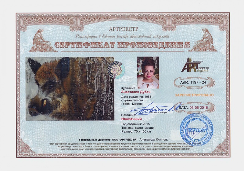 Online система регистрации арт-объектов artreestr / Сертификаты произведений членов «АРТ реестра» / Дубач Анастасия Анатольевна / Нежвачный