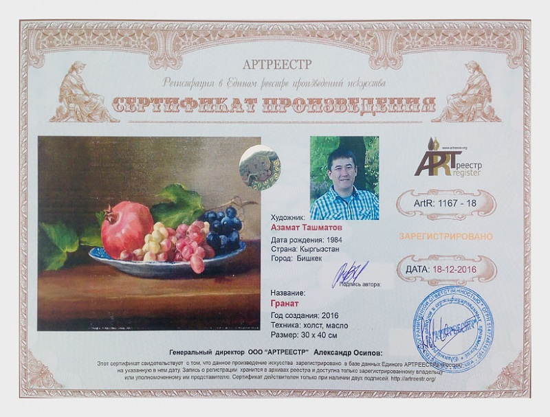 0 0 0 0 0   Online система регистрации арт-объектов artreestr / Сертификаты произведений членов «АРТ реестра» / Ташматов Азамат Абдухалимович / Гранат